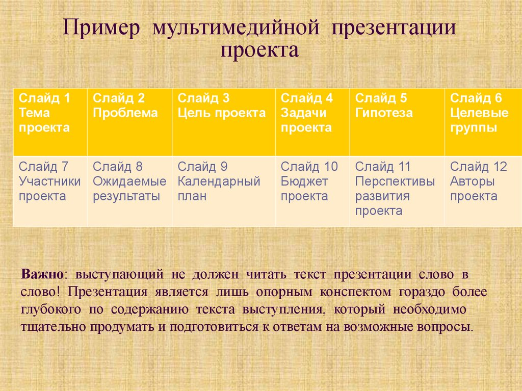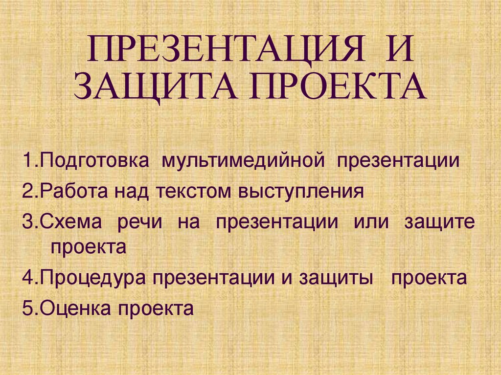 Презентовать (представлять) проект можно на разныхэтапах – от подготовительного (в этом случае