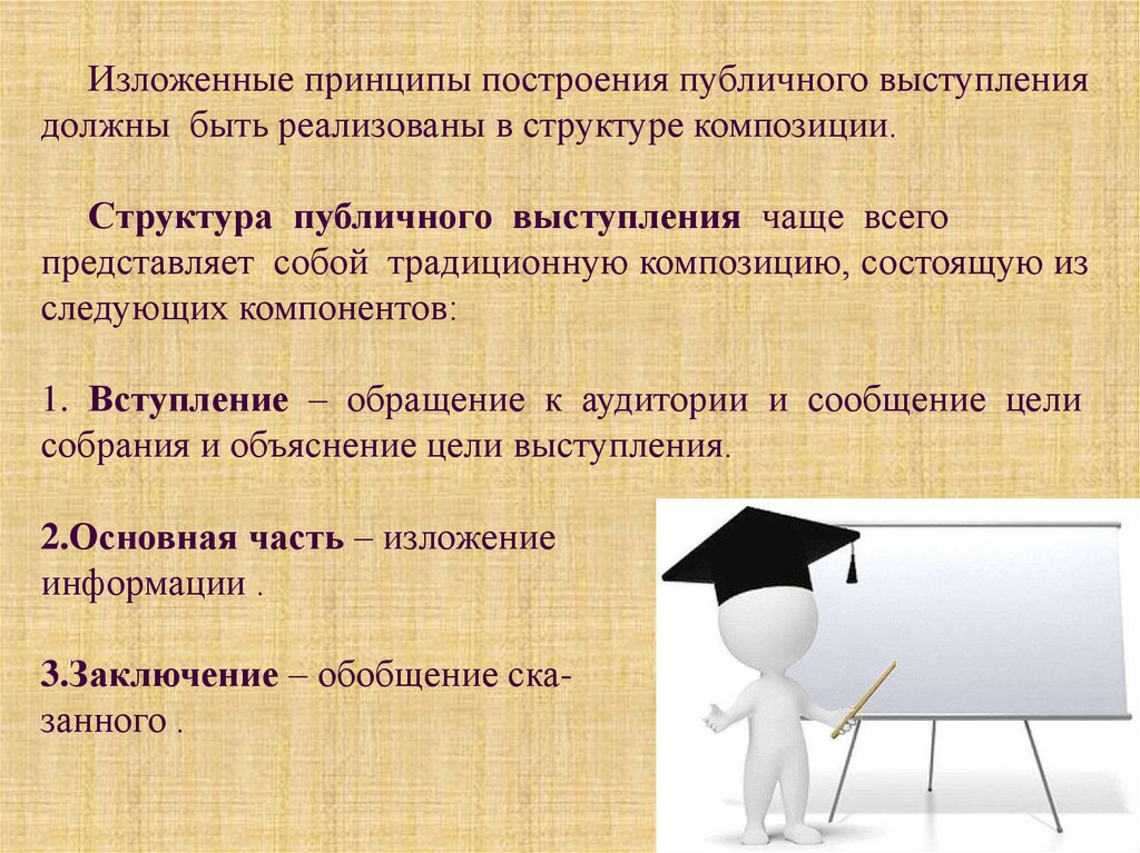 2. Работа над текстом выступленияПринципы построения публичного выступления: