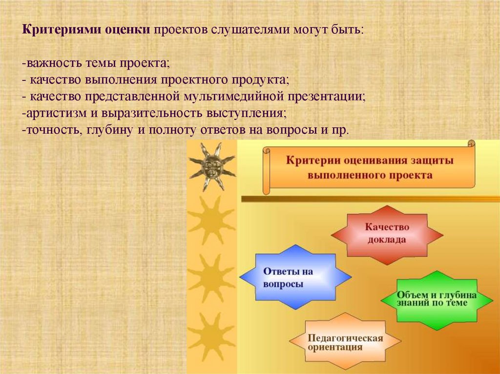 Критериями оценки проектов слушателями могут быть:-важность темы проекта;