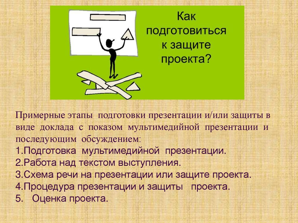 Примерные этапы подготовки презентации и/или защиты ввиде доклада с показом мультимедийной презентации и