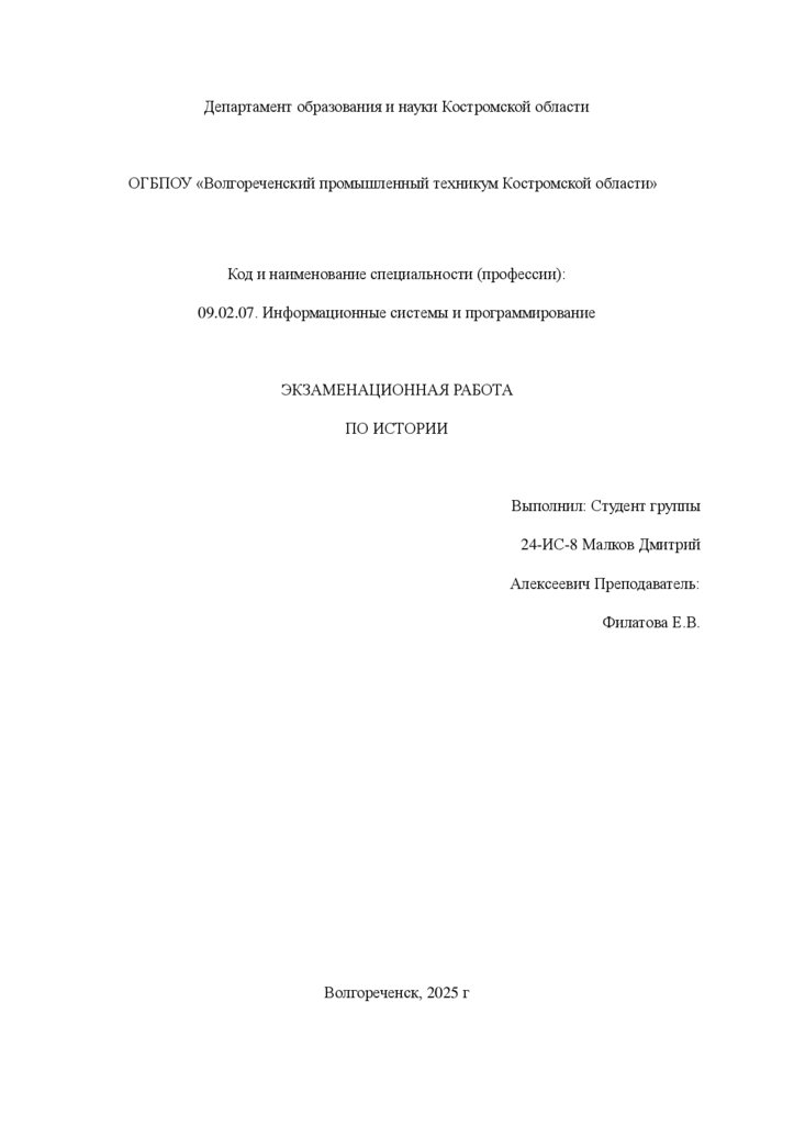 Департамент образования и науки Костромской областиОГБПОУ «Волгореченский промышленный техникум Костромской области»