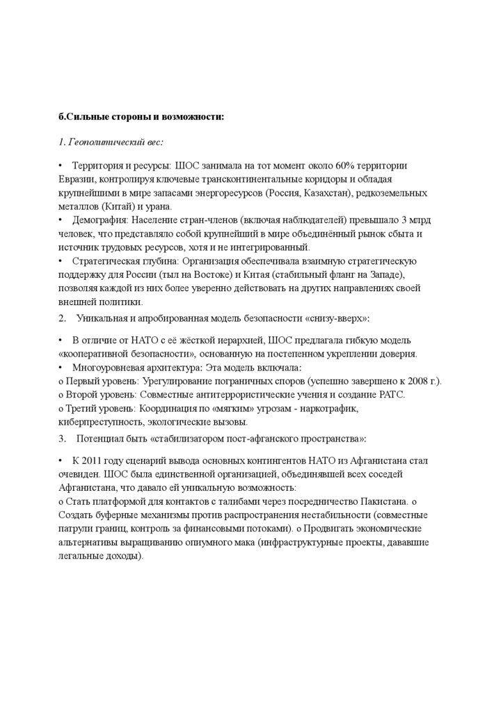 б.Сильные стороны и возможности:1. Геополитический вес: