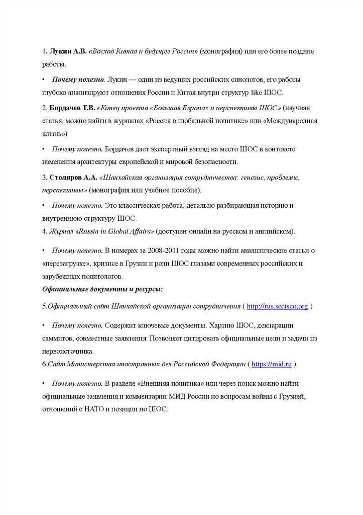 2. Бордачев Т.В. «Конец проекта «Большая Европа» и перспективы ШОС» (научная