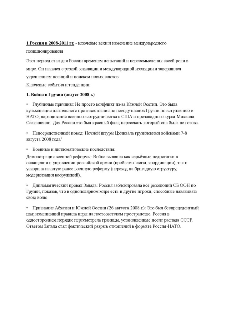 1.Россия в 2008-2011 гг. - ключевые вехи и изменение международногопозиционирования