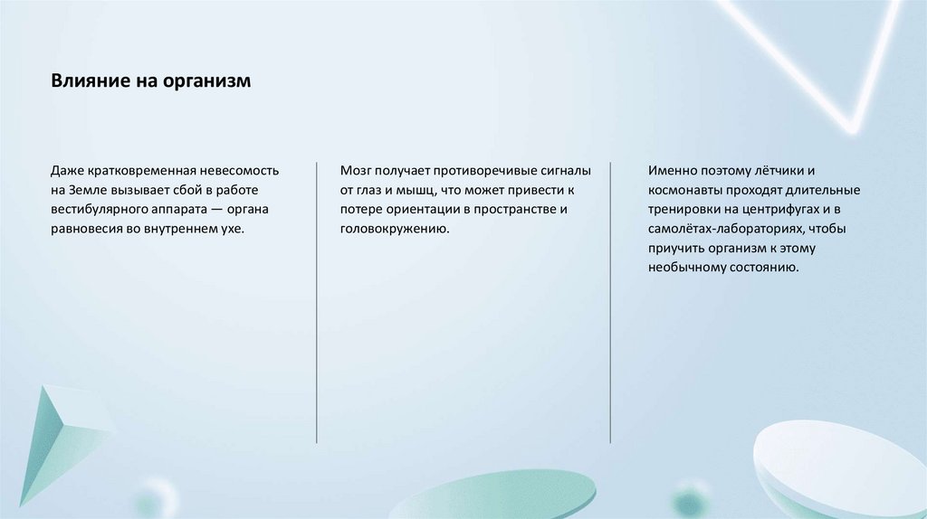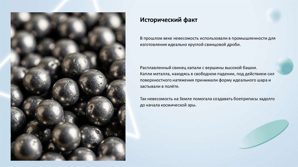 Исторический фактВ прошлом веке невесомость использовали в промышленности для