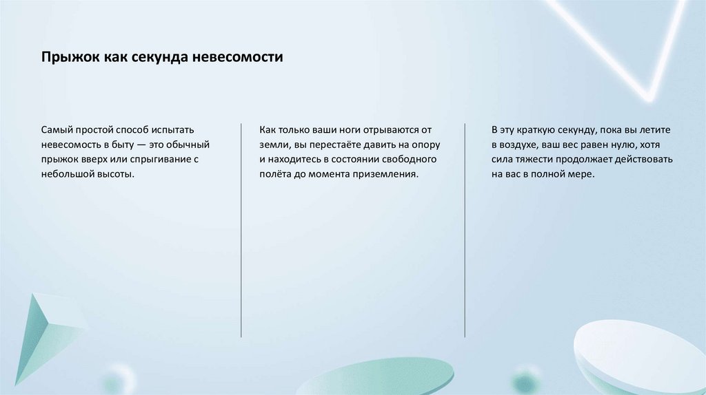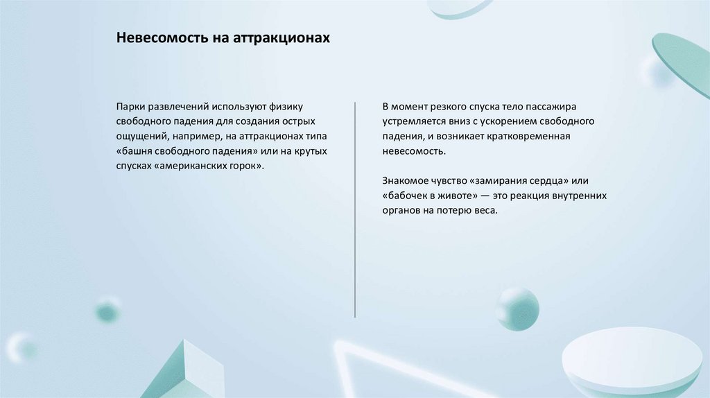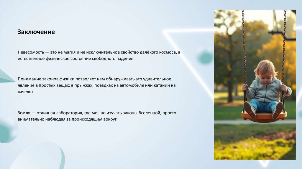 ЗаключениеНевесомость — это не магия и не исключительное свойство далёкого космоса, а