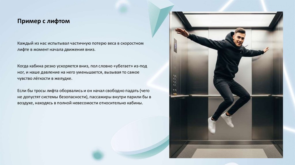 Пример с лифтомКаждый из нас испытывал частичную потерю веса в скоростном