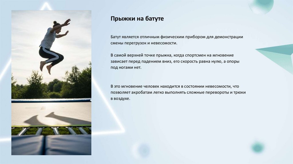 Прыжки на батутеБатут является отличным физическим прибором для демонстрации