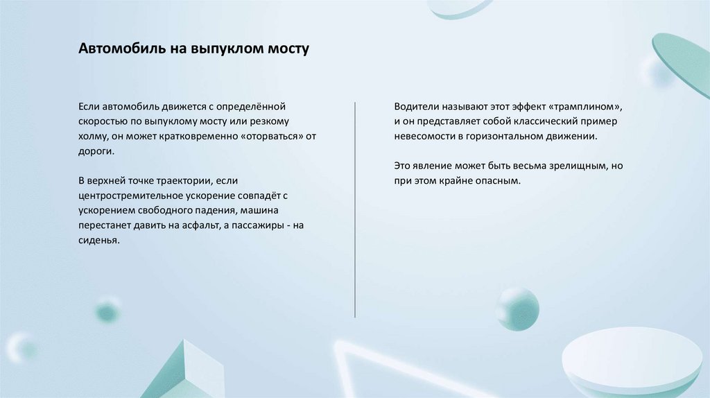 Автомобиль на выпуклом мостуЕсли автомобиль движется с определённой