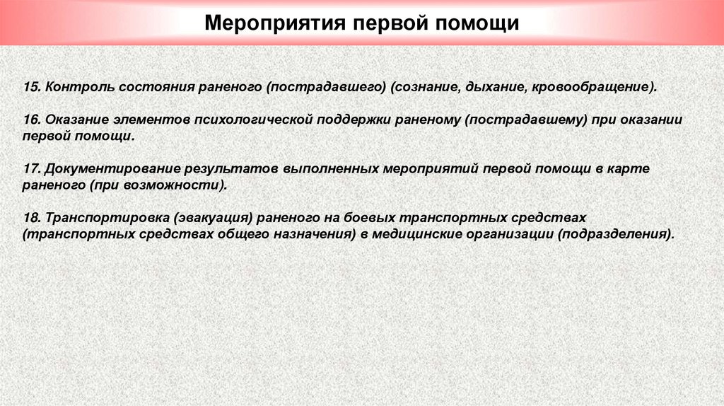 • Cтандарт оказания первой помощи военнослужащими