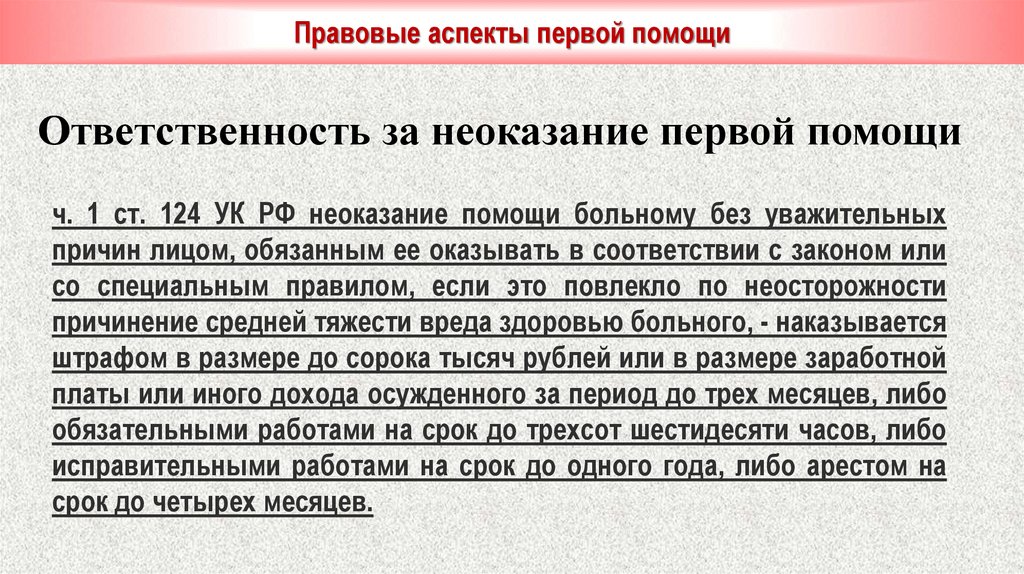 Правовые аспекты первой помощи8.