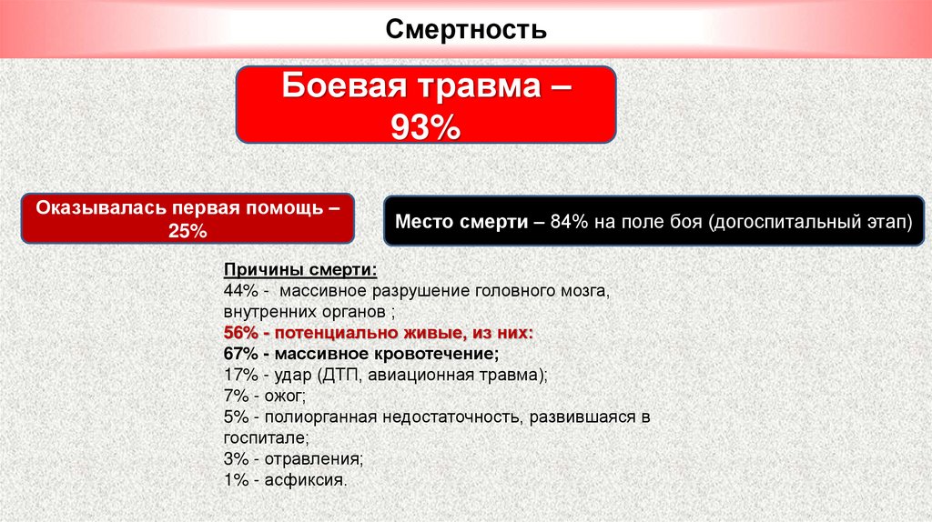 СмертностьБоевая травма –