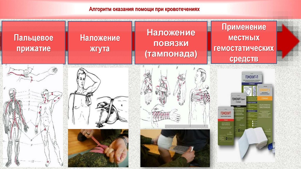 устранение угрожающих факторов для жизни и здоровья раненого,