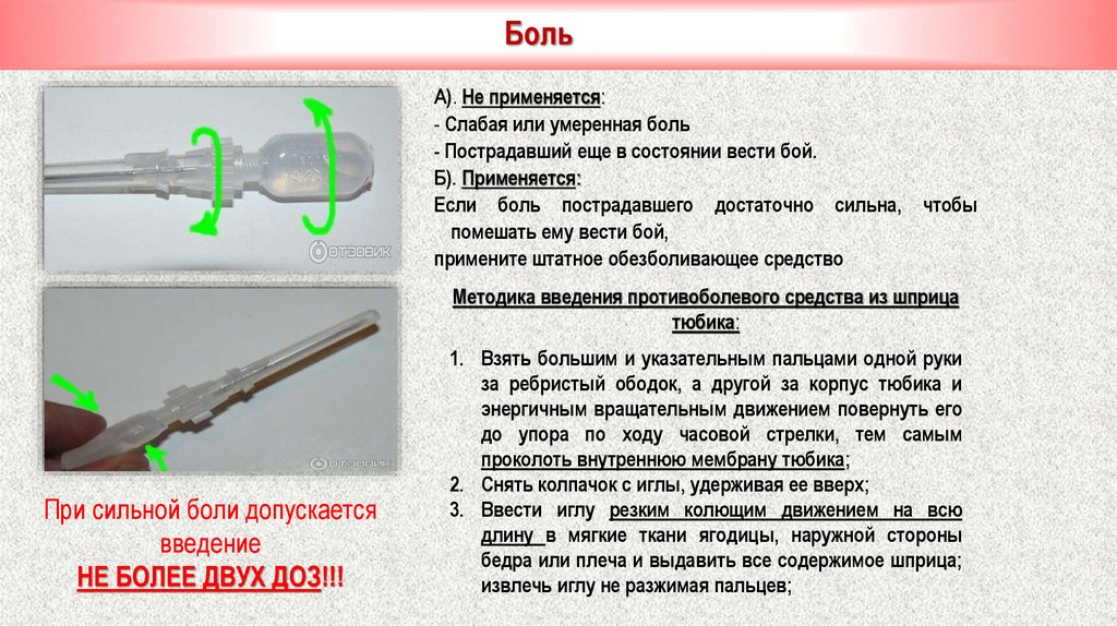Методика введения противоболевого средства из шприца