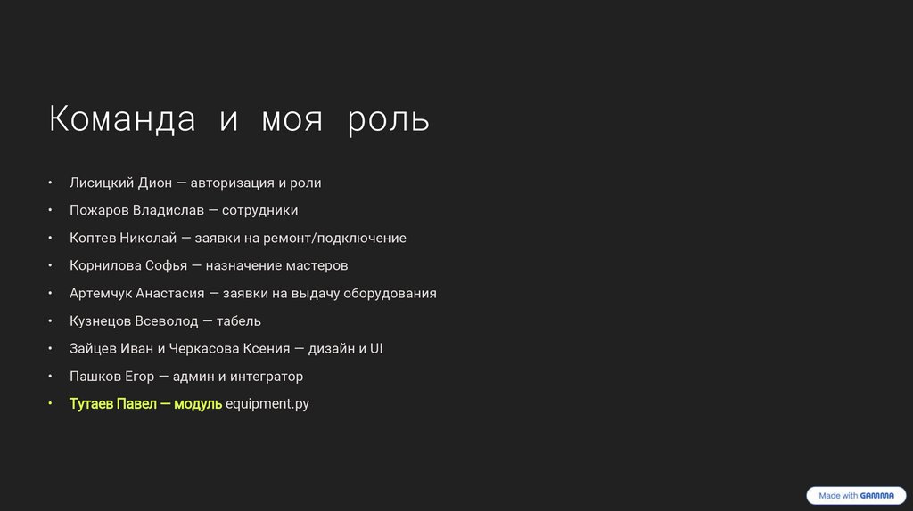 Команда и моя рольЛисицкий Дион — авторизация и роли