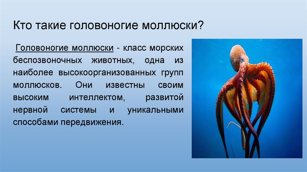 Кто такие головоногие моллюски?Головоногие моллюски - класс морских