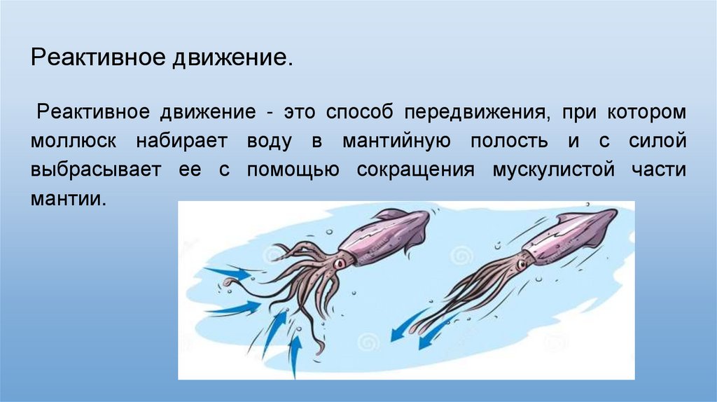 добычи: кальмары и осьминоги активные хищники. Реактивное