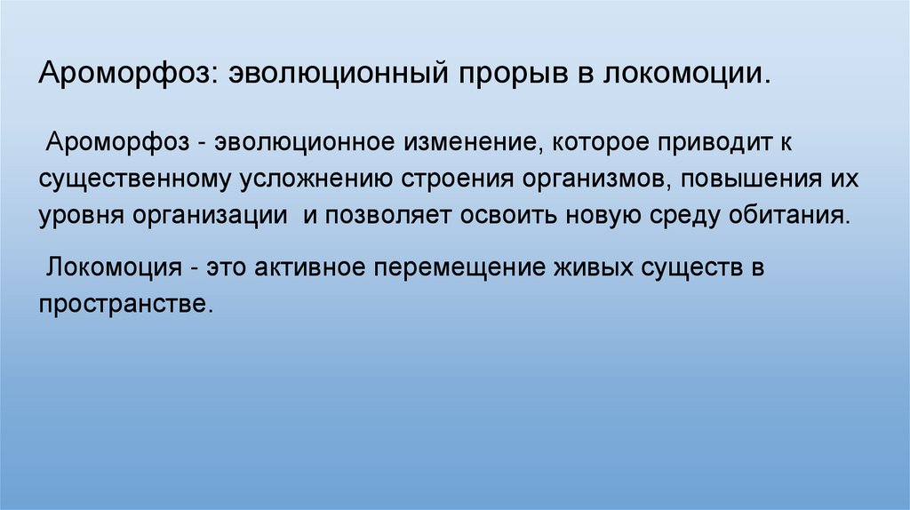 Ароморфоз: эволюционный прорыв в локомоции.Ароморфоз - эволюционное изменение, которое приводит к