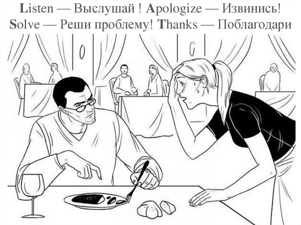 Listen — Выслушай ! Apologize — Извинись!Solve — Реши проблему! Thanks — Поблагодари