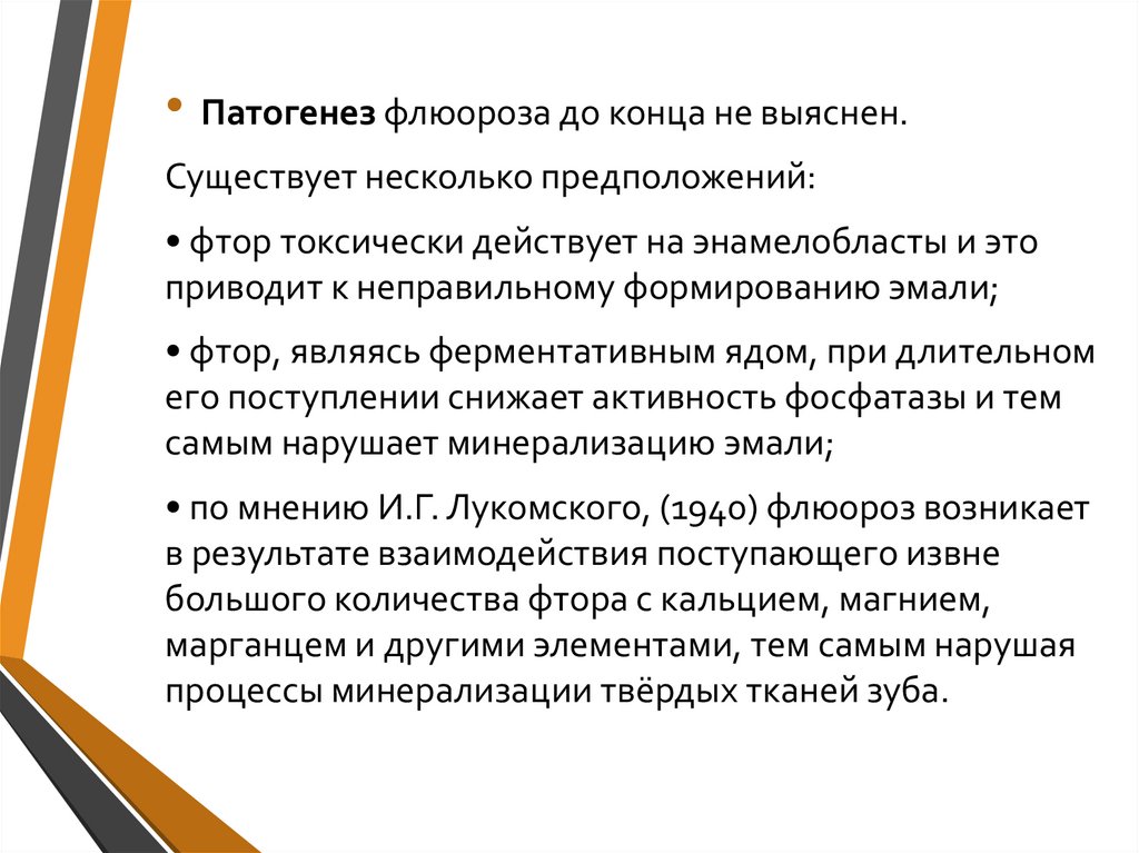 • Этиология и патогенез. Фтор наиболее активный элемент
