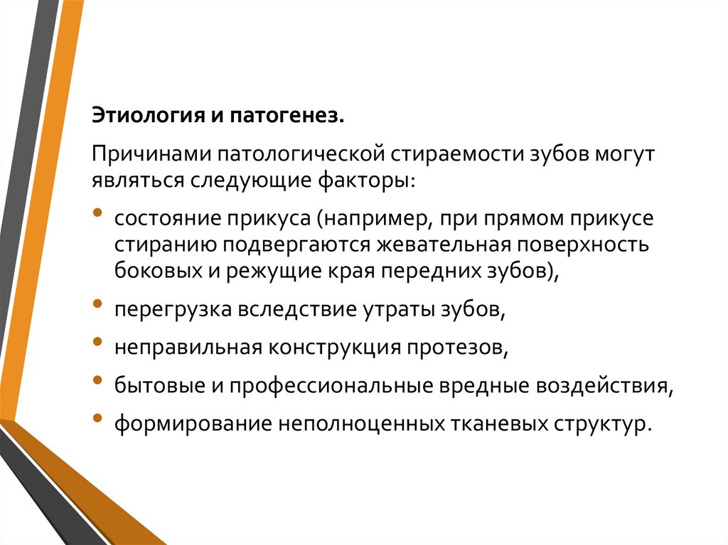 Этиология и патогенез.Причинами патологической стираемости зубов могут