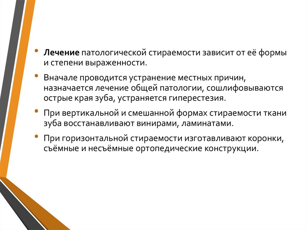 • Лечение патологической стираемости зависит от её формыи степени выраженности.