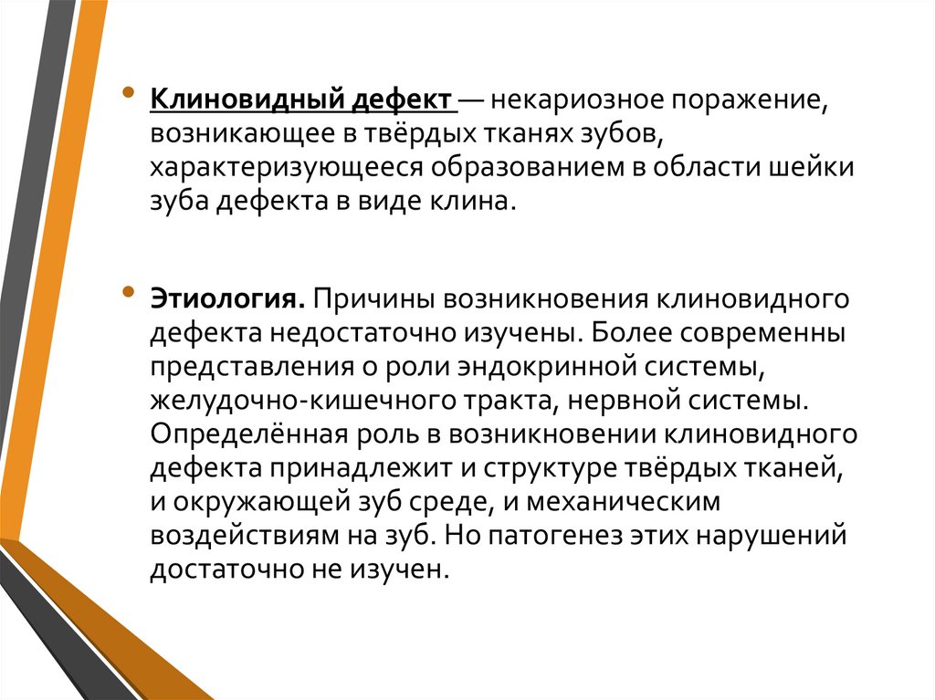 • Клиновидный дефект — некариозное поражение,возникающее в твёрдых тканях зубов,