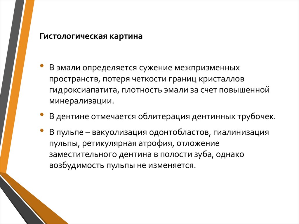 • В пульпе – вакуолизация одонтобластов, гиалинизация