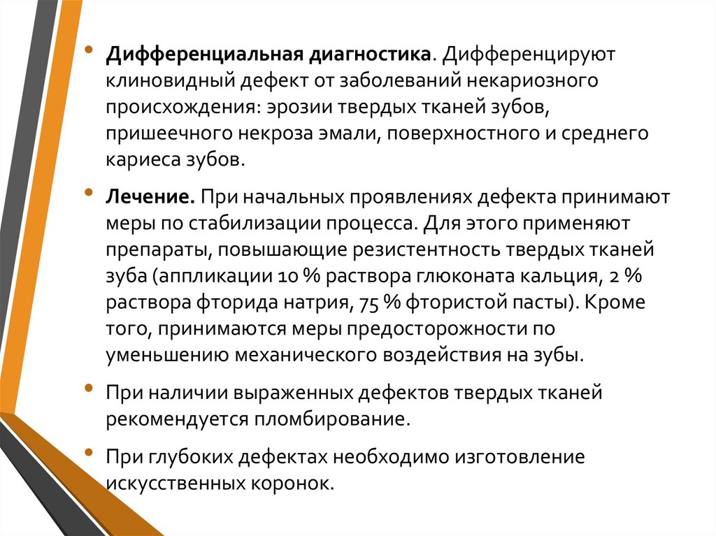 • Дифференциальная диагностика. Дифференцируютклиновидный дефект от заболеваний некариозного