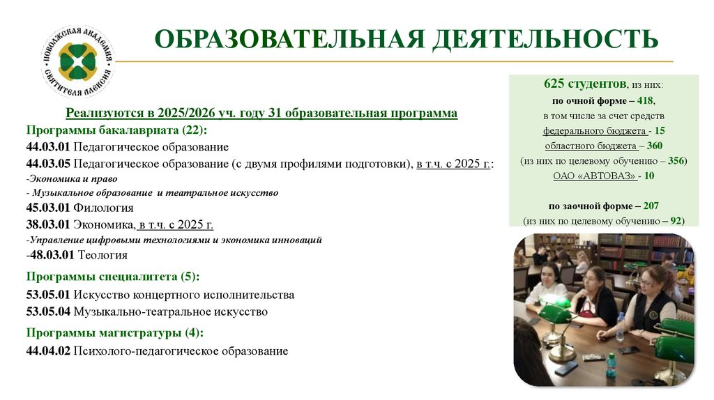 ОБРАЗОВАТЕЛЬНАЯ ДЕЯТЕЛЬНОСТЬ625 студентов, из них: