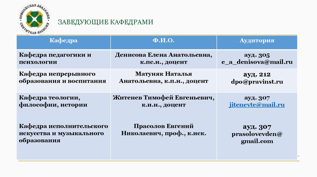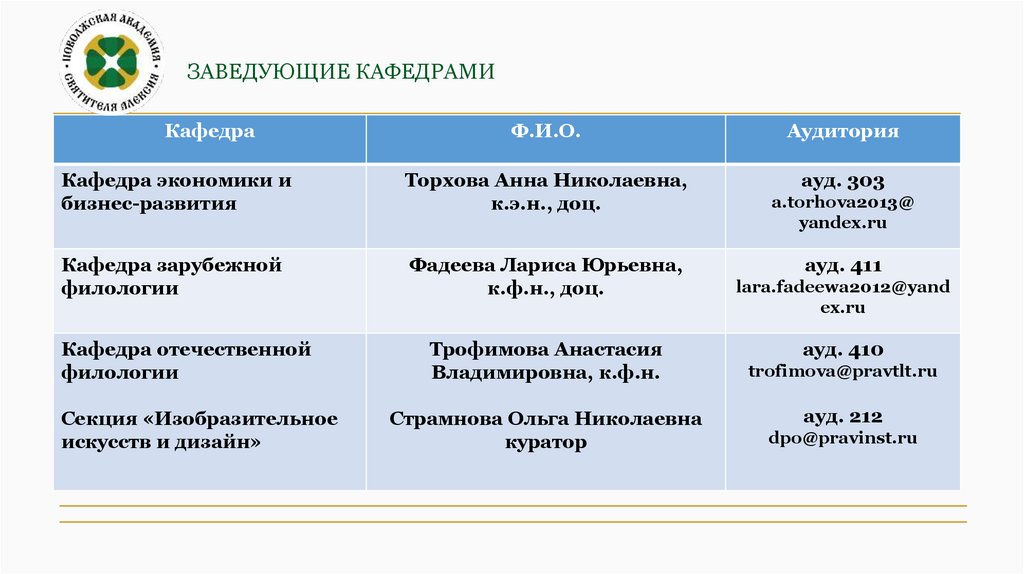 ЗАВЕДУЮЩИЕ КАФЕДРАМИКафедра