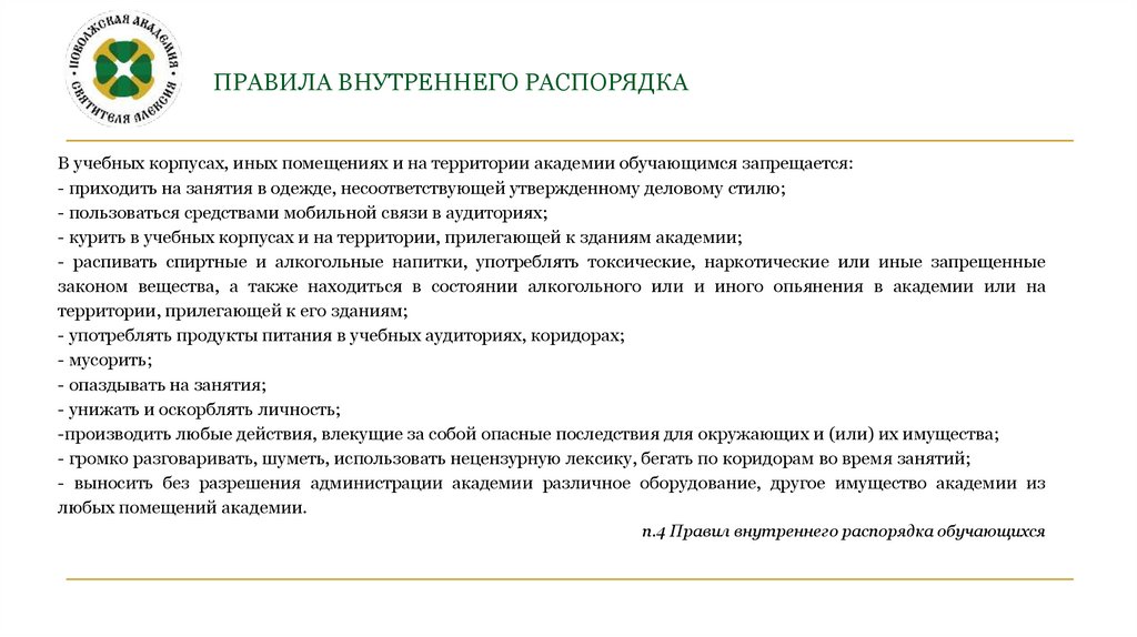 ПРАВИЛА ВНУТРЕННЕГО РАСПОРЯДКАВ учебных корпусах, иных помещениях и на территории академии обучающимся запрещается: