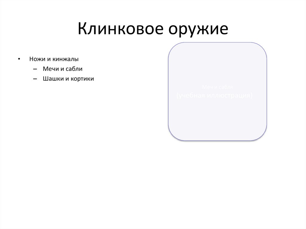 Понятие холодного оружияХолодное оружие — средство поражения, использующее мускульную силу человека.