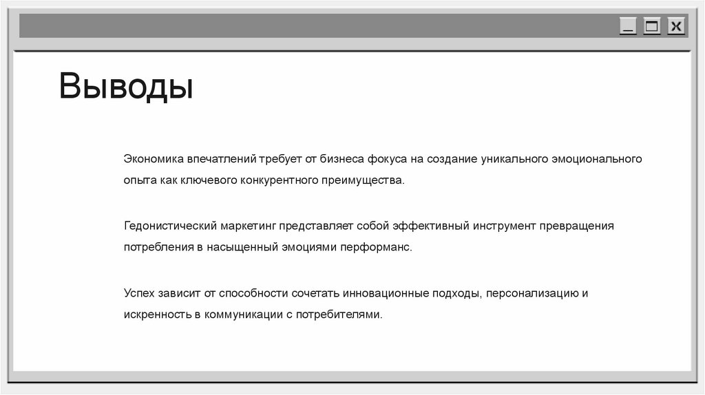 ВыводыЭкономика впечатлений требует от бизнеса фокуса на создание уникального эмоционального