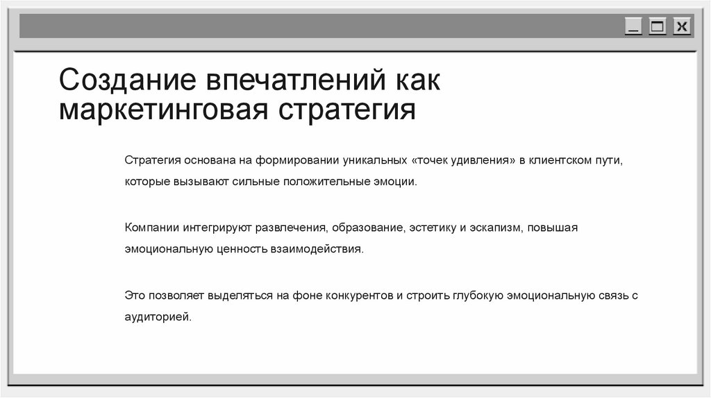 Создание впечатлений какмаркетинговая стратегия