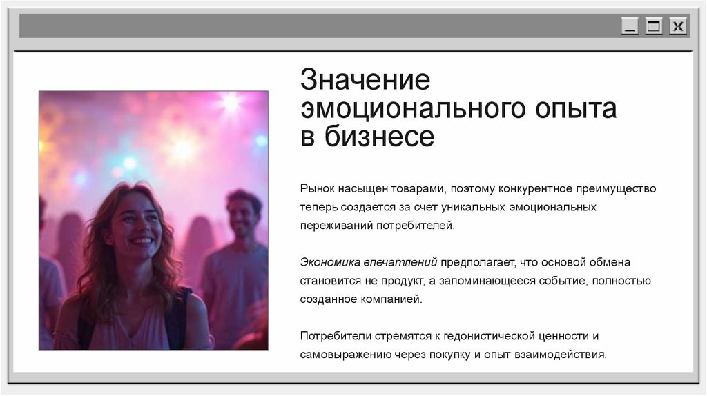 Экономика впечатлений предполагает, что основой обмена
