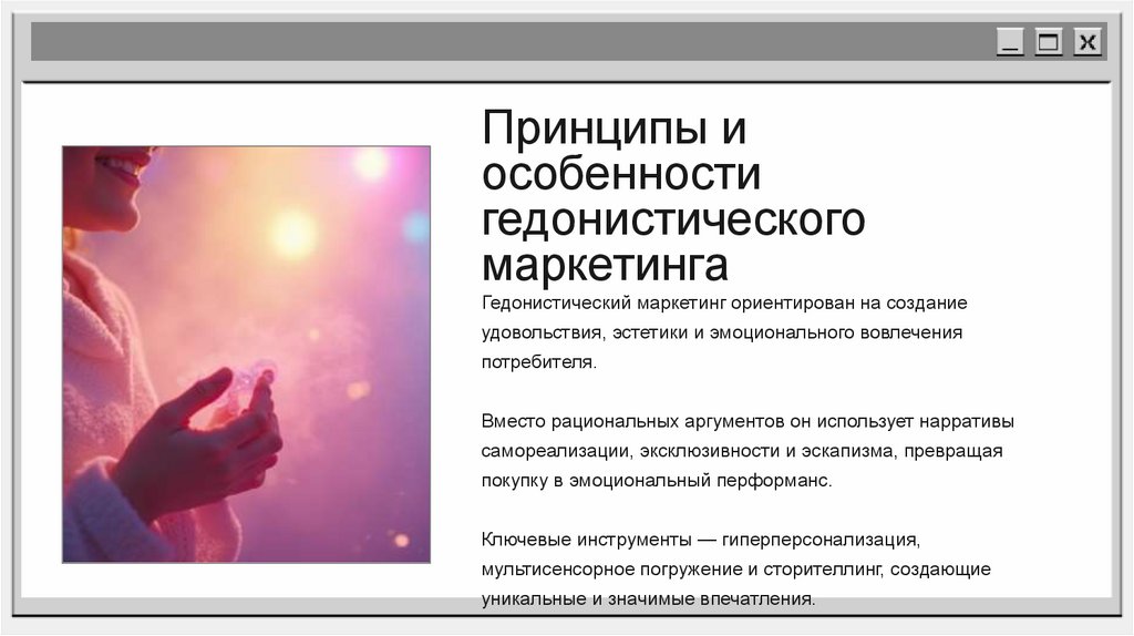 Гедонистический маркетинг представляет собой эффективный инструмент превращения