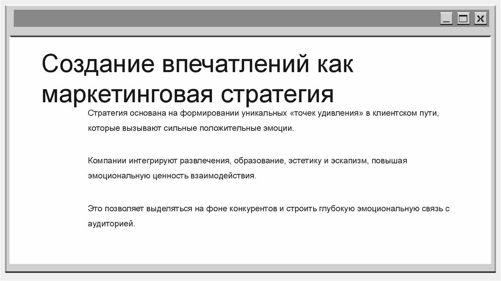 Создание впечатлений какмаркетинговая стратегия