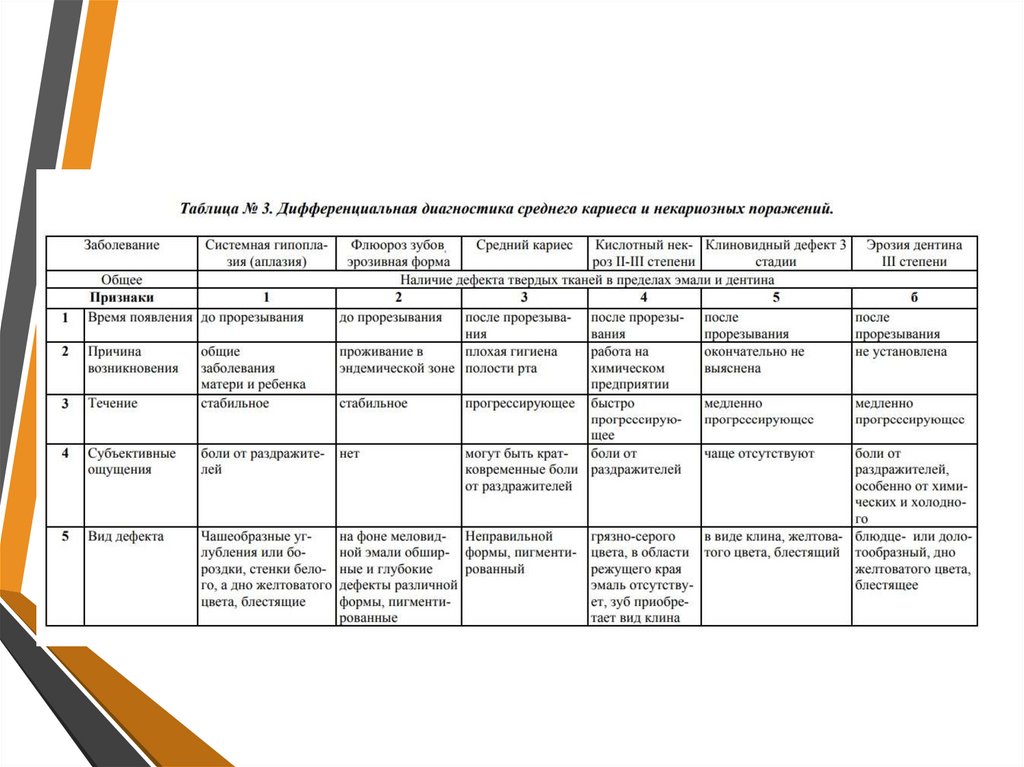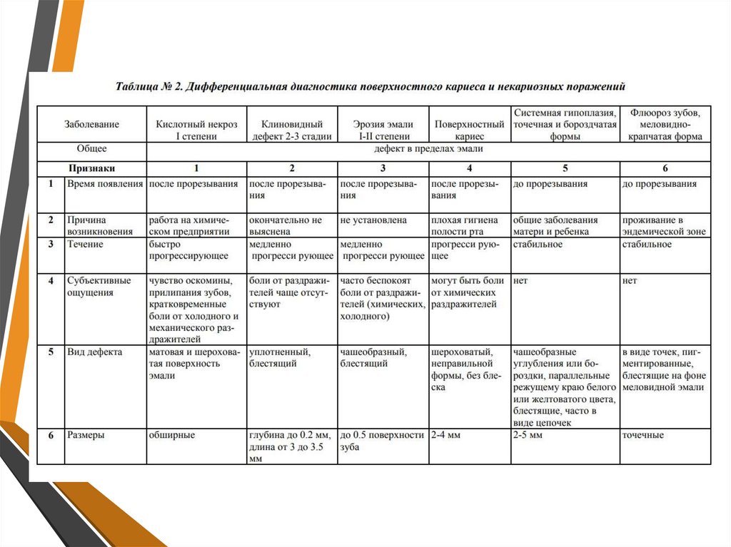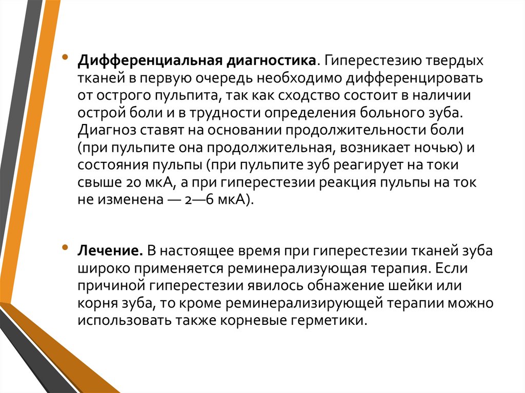 • Дифференциальная диагностика. Гиперестезию твердыхтканей в первую очередь необходимо дифференцировать