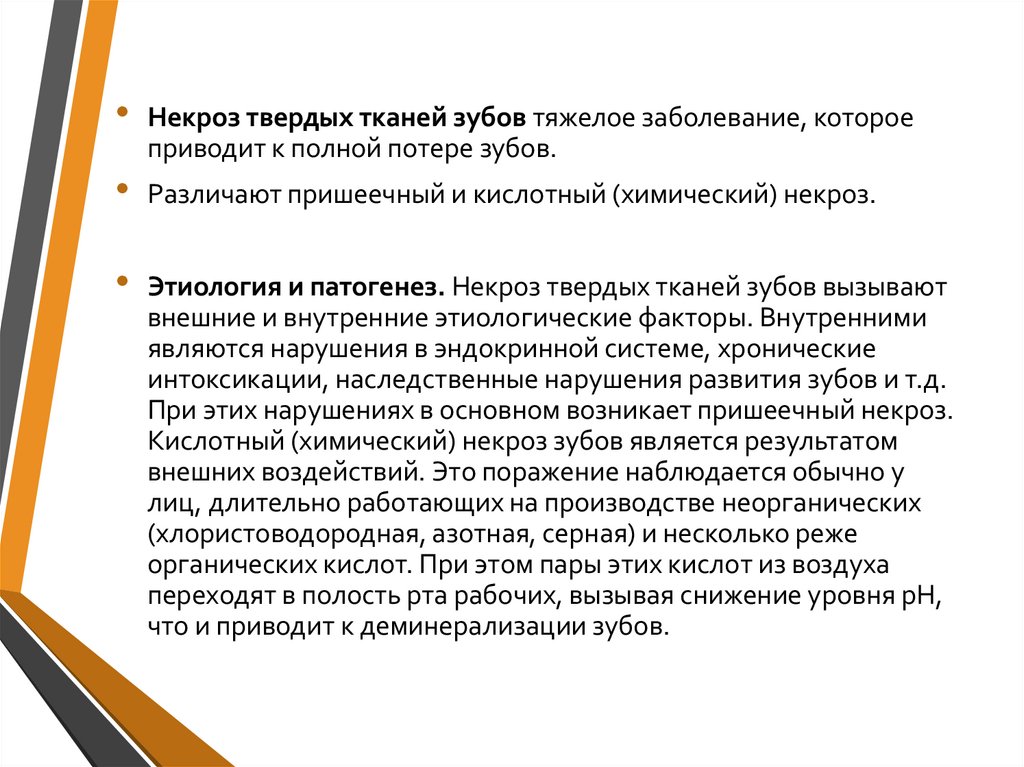 • Этиология и патогенез. Некроз твердых тканей зубов вызывают