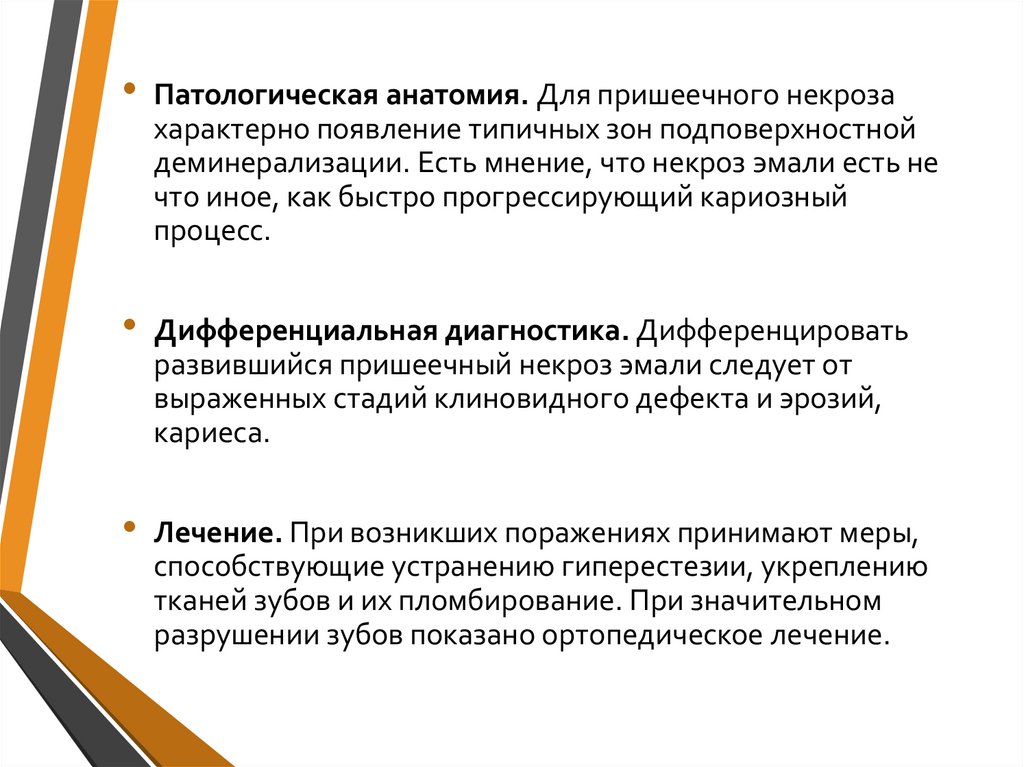 • Патологическая анатомия. Для пришеечного некрозахарактерно появление типичных зон подповерхностной