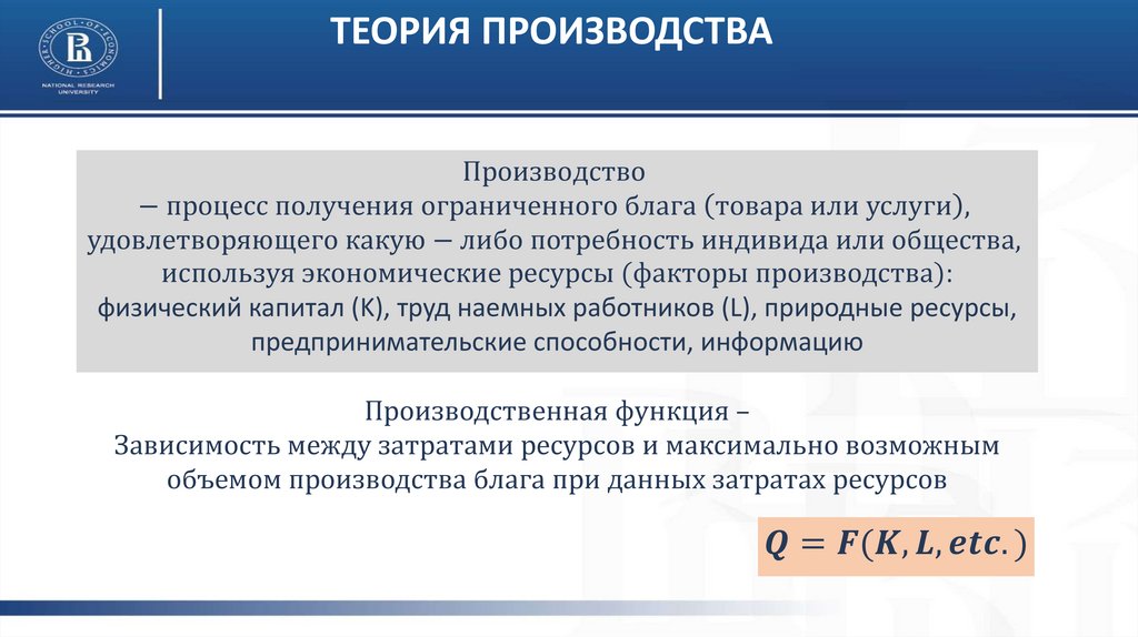 ТЕОРИЯ ПРОИЗВОДСТВАПроизводство