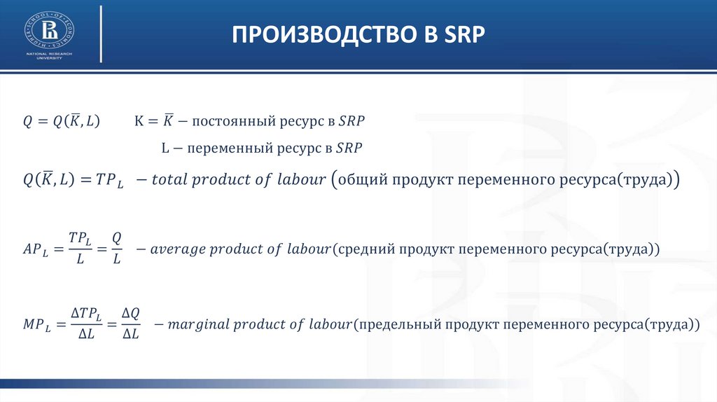 физический капитал (K), труд наемных работников (L), природные ресурсы,