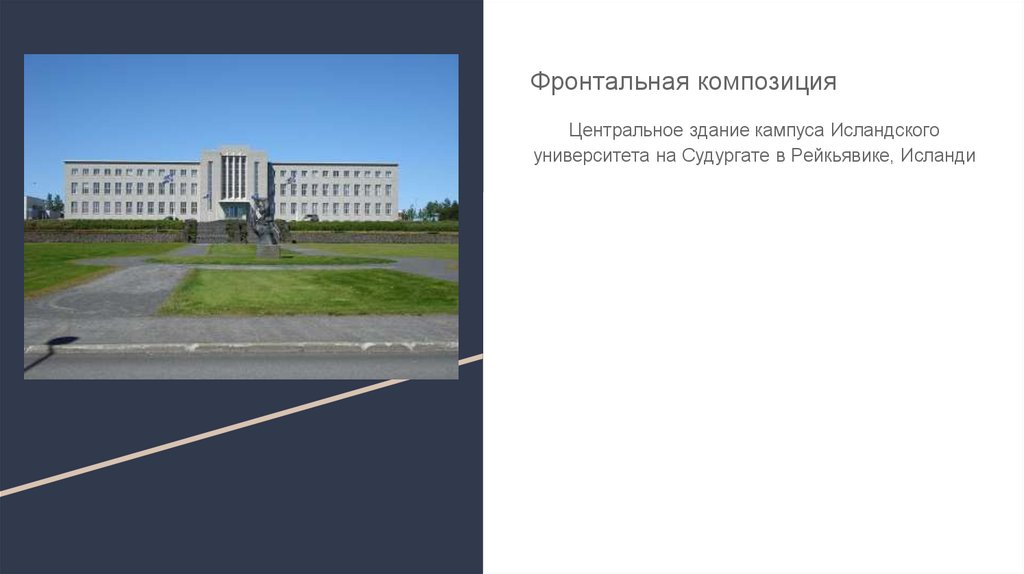 Фронтальная композицияЦентральное здание кампуса Исландского