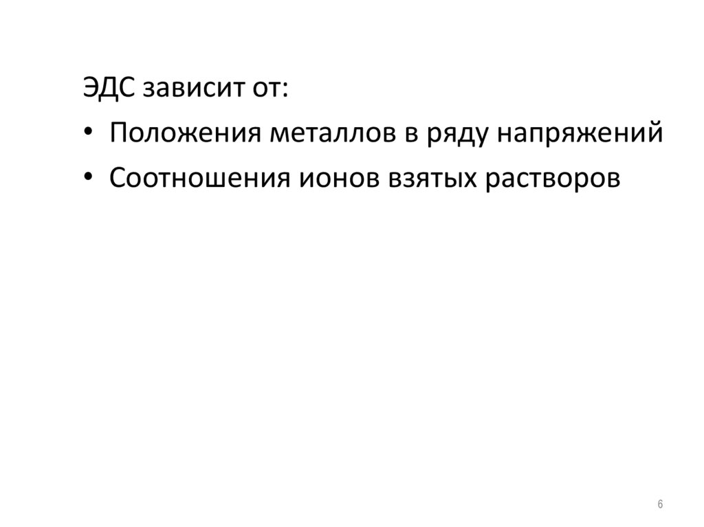 ЭДС зависит от:• Положения металлов в ряду напряжений