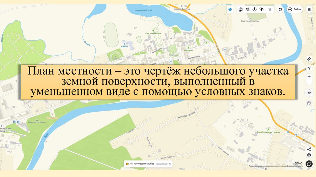 План местности – это чертёж небольшого участказемной поверхности, выполненный в