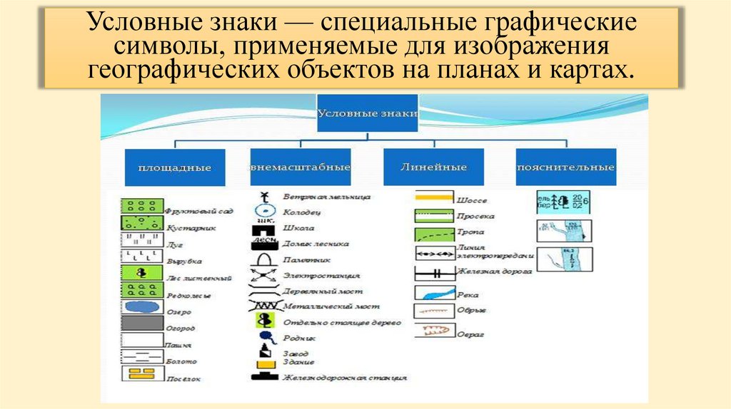 Условные знаки — специальные графическиесимволы, применяемые для изображения