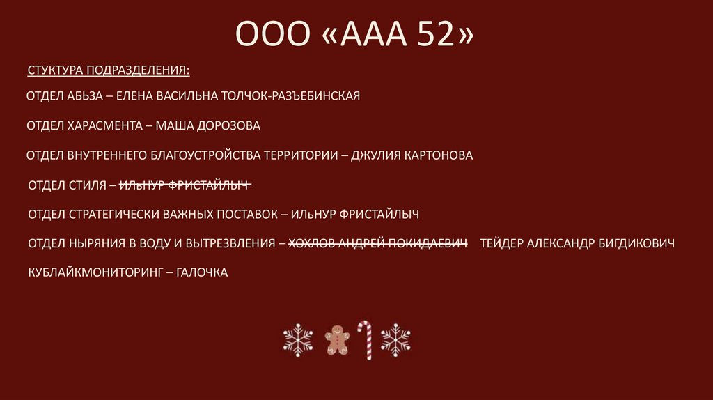 ООО «ААА 52»СТУКТУРА ПОДРАЗДЕЛЕНИЯ: