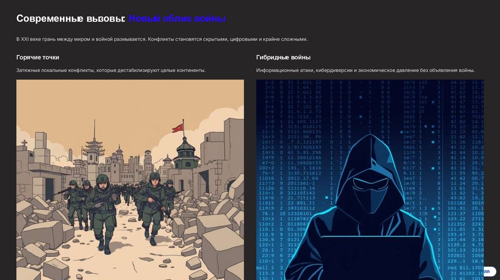 Современные вызовы: Новый облик войныВ XXI веке грань между миром и войной размывается. Конфликты становятся скрытыми, цифровыми и крайне сложными.