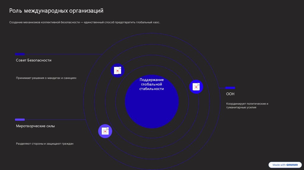 Рол ь международных организацийСоздание механизмов коллективной безопасности — единственный способ предотвратить глобальный хаос.